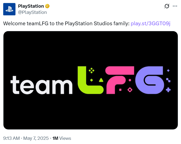 A TeamLFG é o mais novo estúdio a se juntar à família PlayStation Studios, segundo anunciou o CEO do Studio Business Group da Sony Interactive Entertainment, Hermen Hulst. O executivo disse que o estúdio “se originou na Bungie, mas também reuniu desenvolvedores de toda a indústria para dar vida a um projeto de incubação ambicioso que me deixa muito empolgado”.