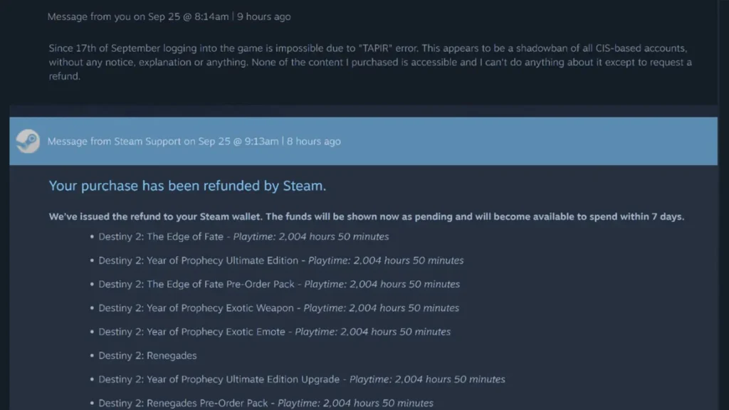 A situação gerou um movimento por reembolsos na Steam. A Valve tem aceitado pedidos em alguns casos, inclusive de usuários com milhares de horas registradas, como o de um jogador com mais de 2.000 horas que recebeu reembolso integral de DLCs, conforme mostrado no site The Game Post. Outros, no entanto, não tiveram a mesma sorte, o que sugere critérios inconsistentes nas análises da empresa.